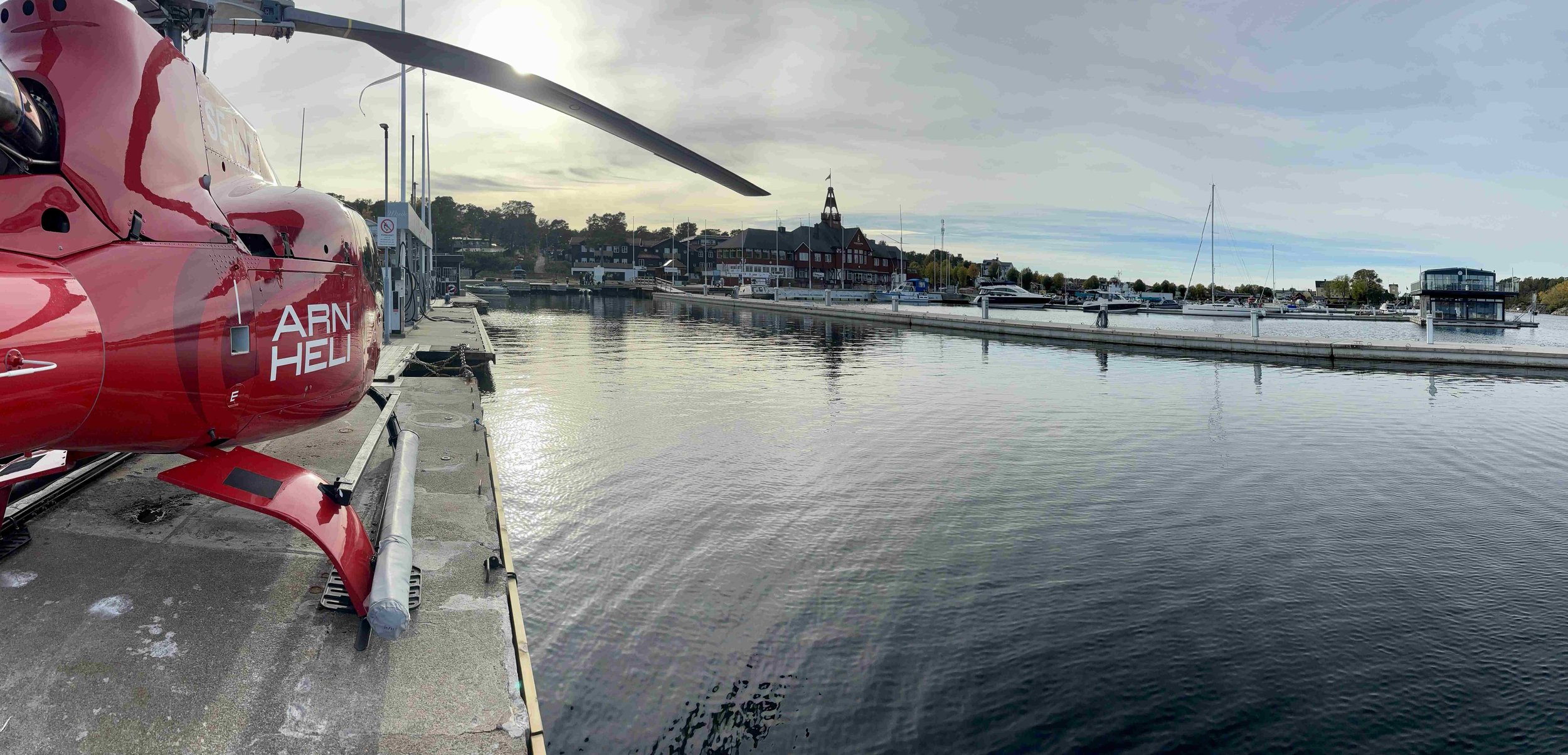 Flyg med helikopter och inta en middag på Sandhamn, en av skärgårdens mest levande och idylliska platser.